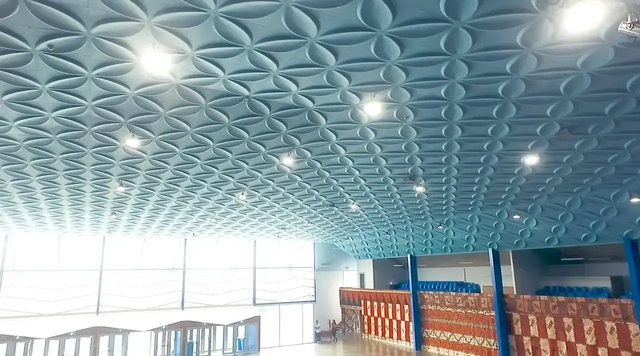 3D-plafondtegels zijn een dynamisch alternatief voor traditionele plafondsystemen en transformeren bovengrondse oppervlakken in architecturale kenmerken die geluid absorberen en visuele interesse wekken. Elke tegel is gemaakt van 100% polyestervezel met 55% gerecycled materiaal en is thermisch gegoten in abstracte, driedimensionale vormen die de nagalm verzachten en het ontwerp naar een hoger niveau tillen.