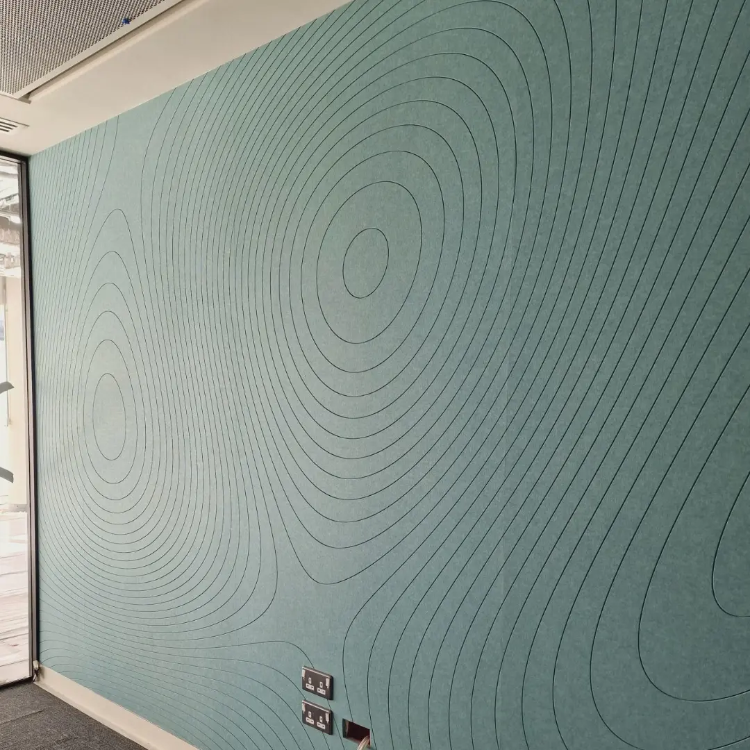 De Contour wandbekleding is een architecturaal akoestisch paneel ontworpen om textuur, ritme en hoge geluidsabsorptie te brengen in verticale oppervlakken. De zorgvuldig gefreesde schuine V-lijnen introduceren diepte en beweging terwijl ze de nagalm verminderen in werkruimten, horeca-interieurs of leeromgevingen.