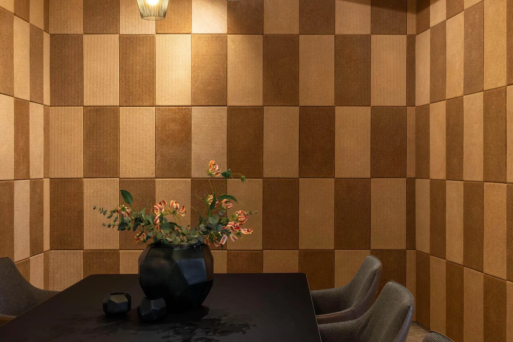 ARCHISONIC® katoenen tegels bieden een harmonieuze samensmelting van duurzaamheid, geluidsabsorptie en verfijnd wandontwerp. Deze modulaire akoestische tegels, handgemaakt in Italië, zijn gemaakt van katoenen linters, een bijproduct van de landbouw en natuurlijke minerale pigmenten, wat resulteert in een 100% circulair product met een prachtig organische textuur.