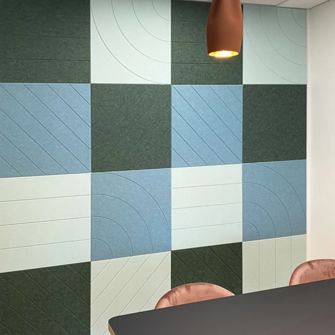 Flow is een akoestische wandoplossing met een speels en dynamisch patroon dat bewegende lijnen creëert die van het ene paneel naar het andere vloeien. Een doorlopend patroon of een reekspatroon kan worden gewijzigd door panelen afwisselend om te draaien.