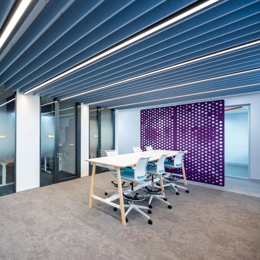 De harmonieuze verdeling van de ronde perforaties van de akoestische roomdivider is gebaseerd op de Delaunay-triangulatie. Punten zijn verknoopt met driehoeken zodat er geen andere punten zijn binnen de cirkel waarop de drie driehoekspunten liggen (omtrek van de driehoek).