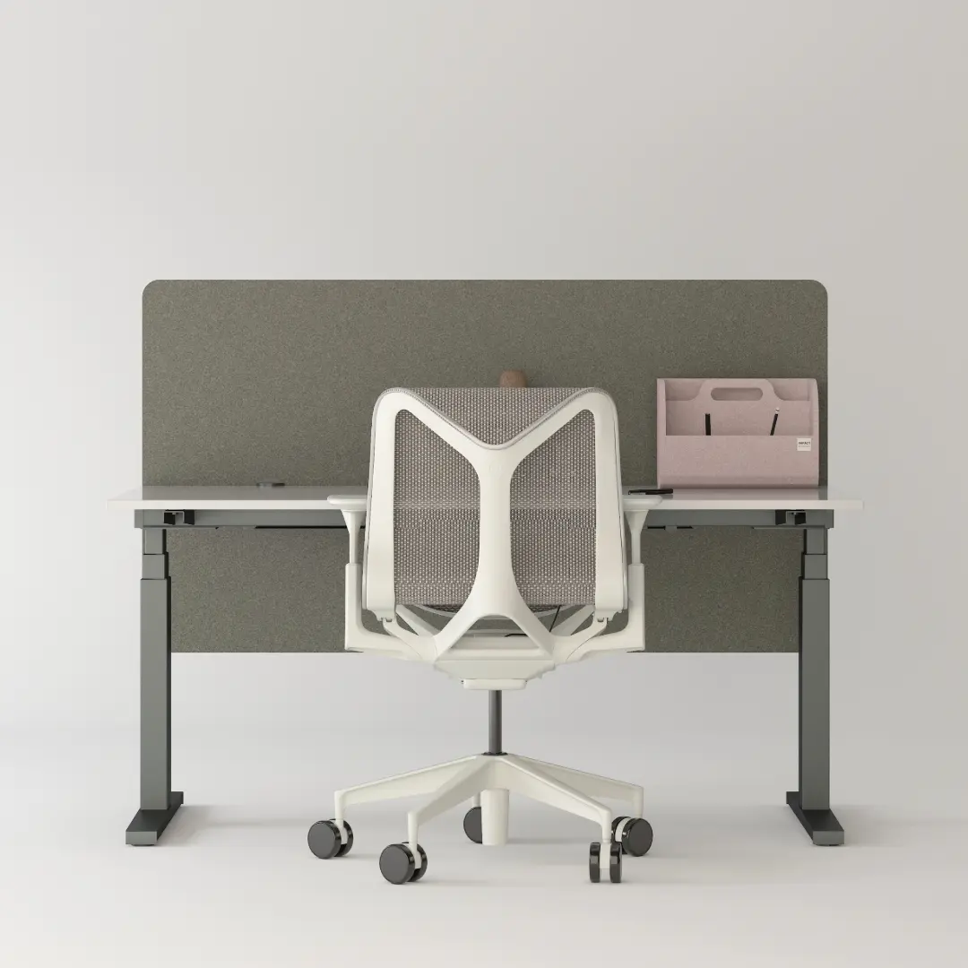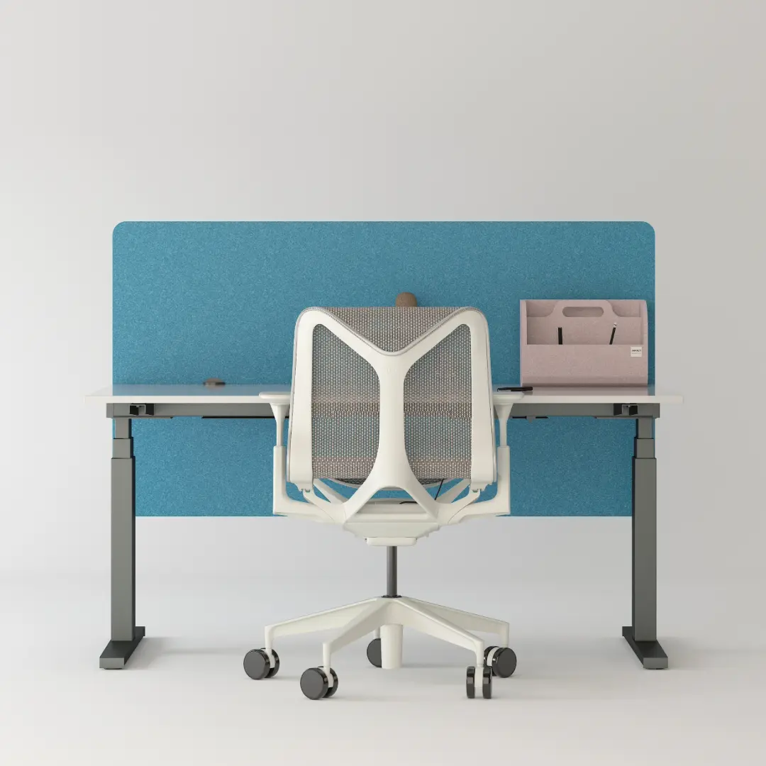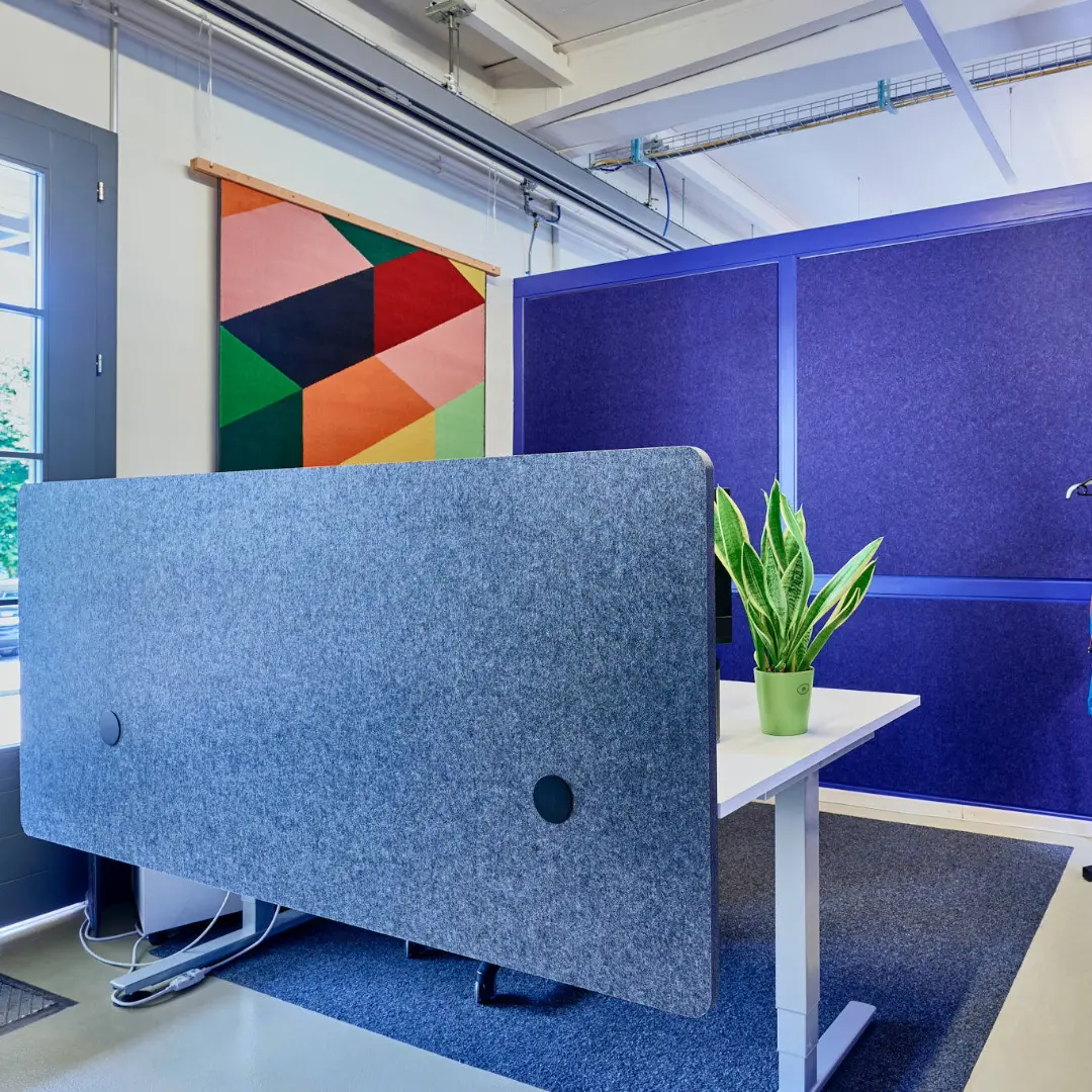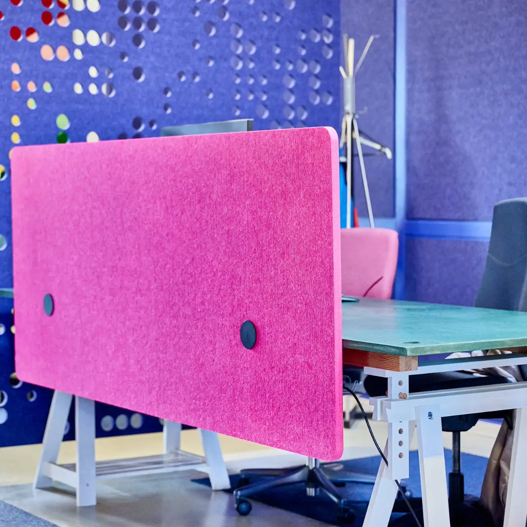 De Infra Desk Division biedt een effectieve, designgerichte manier om akoestisch comfort en persoonlijke ruimte te bieden aan gedeelde bureaus en werkplekken. Deze panelen zijn gemaakt van ARCHISONIC® Felt - gemaakt van 60% gerecycled PET - en verminderen visuele afleiding en absorberen geluid, zodat u zich beter kunt concentreren in drukke omgevingen.