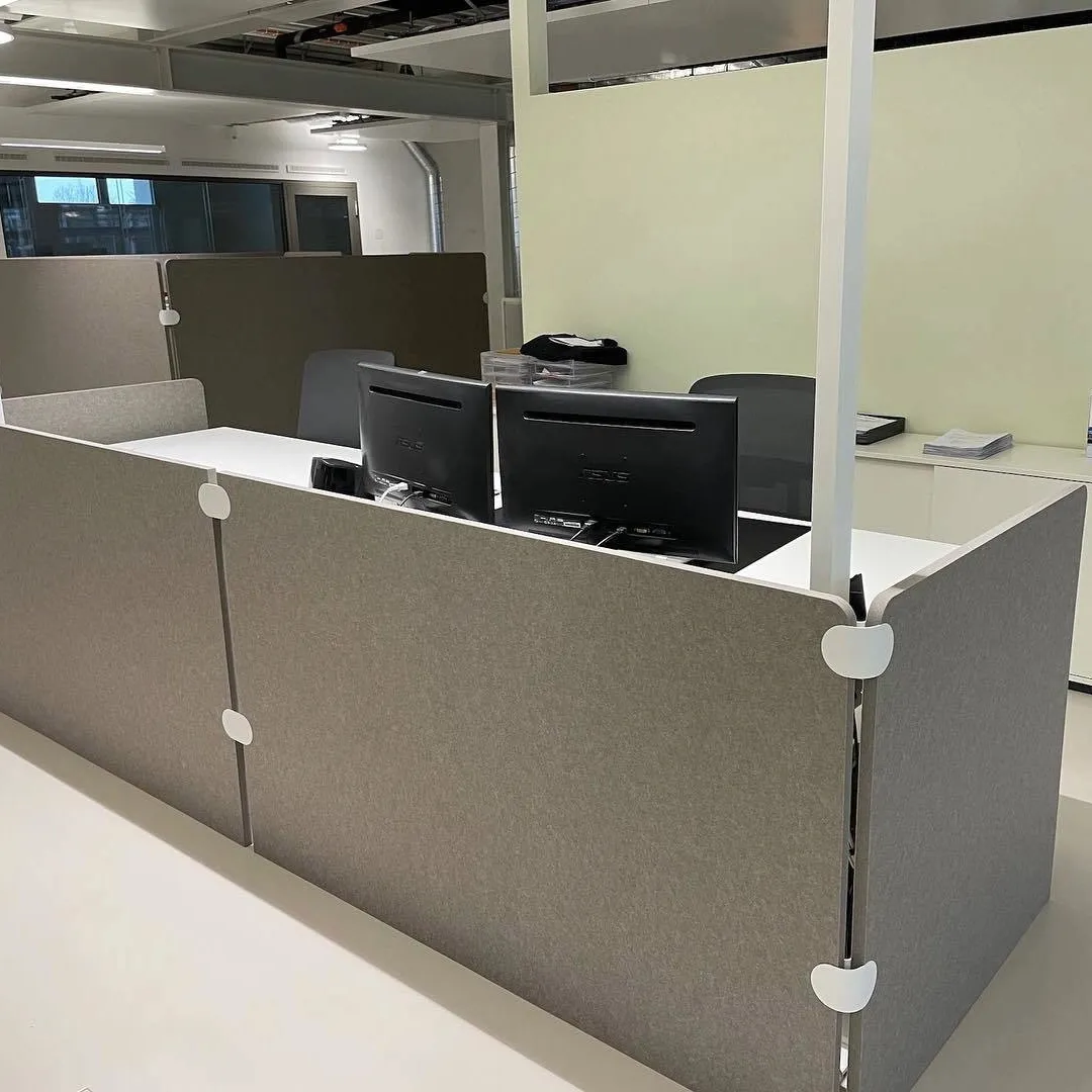 De Murus Standing Desk Division is een modulair akoestisch scheidingssysteem dat is ontworpen om structuur, privacy en geluidsbeheersing te brengen in open werkruimten, zonder permanente barrières te bouwen. Elke set is licht maar robuust en omringt een of meer bureaus, waardoor geconcentreerde zones ontstaan die zowel het comfort als de productiviteit verbeteren.