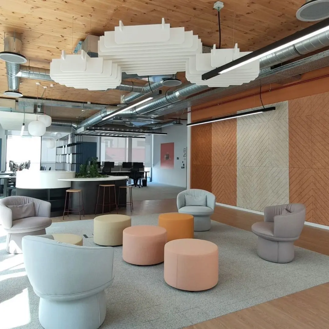 Nebula wordt geleverd in twee verschillende radiussen en hoogtes, die elkaar aanvullen. Het richt zich op de akoestiek van de ruimte door het creëren van wolk-achtige schottenpatronen die ook esthetisch aantrekkelijk zijn.