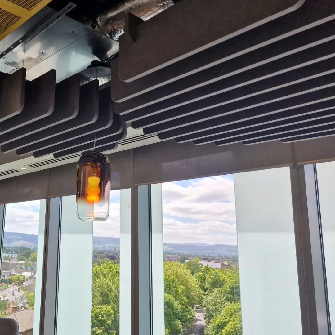 Baffles zijn akoestisch waardevol omdat ze een groot akoestisch absorberend oppervlakte bieden.