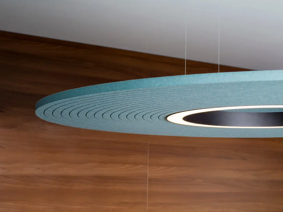 Met zijn uitgebalanceerde vorm en doordachte techniek transformeert Orbis plafonds in elegante, hoogwaardige akoestische omgevingen.