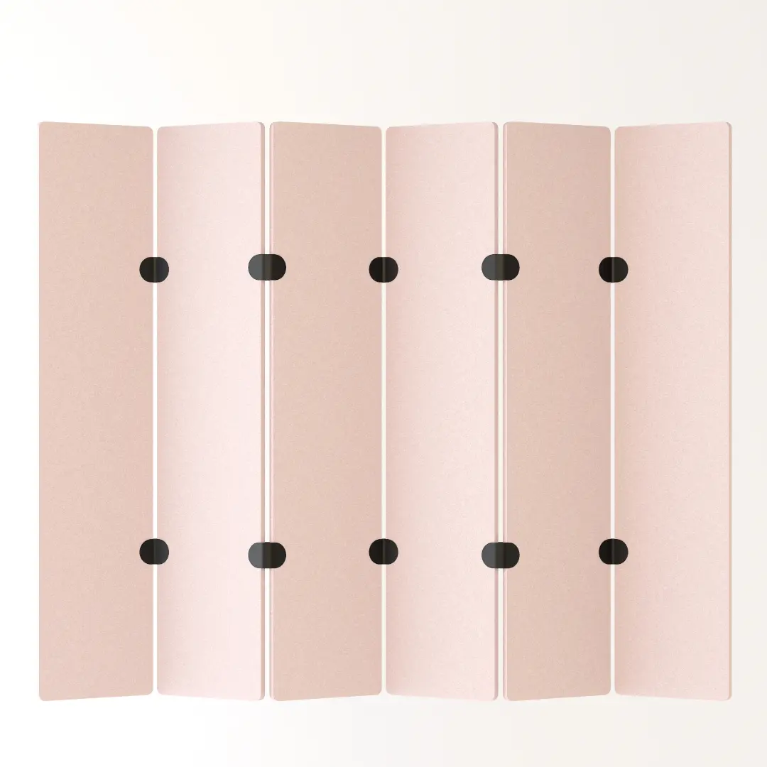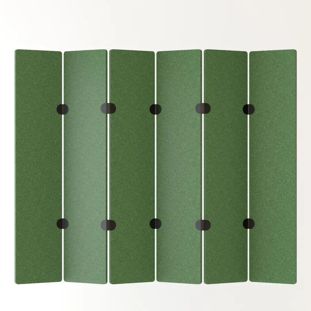 Minimalisme en eenvoud definiëren de akoestische roomdivider Paling. De afzonderlijke onderdelen worden zonder gereedschap met elkaar verbonden door middel van flexibele connectoren.