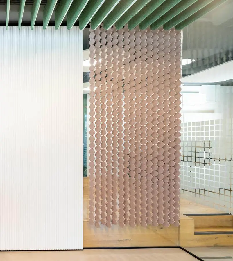 Met zijn vermogen om zowel te roteren als te glijden, stelt Pixels gebruikers in staat om ruimtes vloeiend te definiëren... het openen, sluiten of gedeeltelijk onthullen van gebieden op basis van activiteit of stemming. Naast de geluidsregeling (NRC 0.40) fungeren de roterende lamellen ook als lichtfilters, waardoor gebruikers schaduwen en verblinding kunnen aanpassen, wat het comfort in natuurlijk verlichte interieurs verbetert.