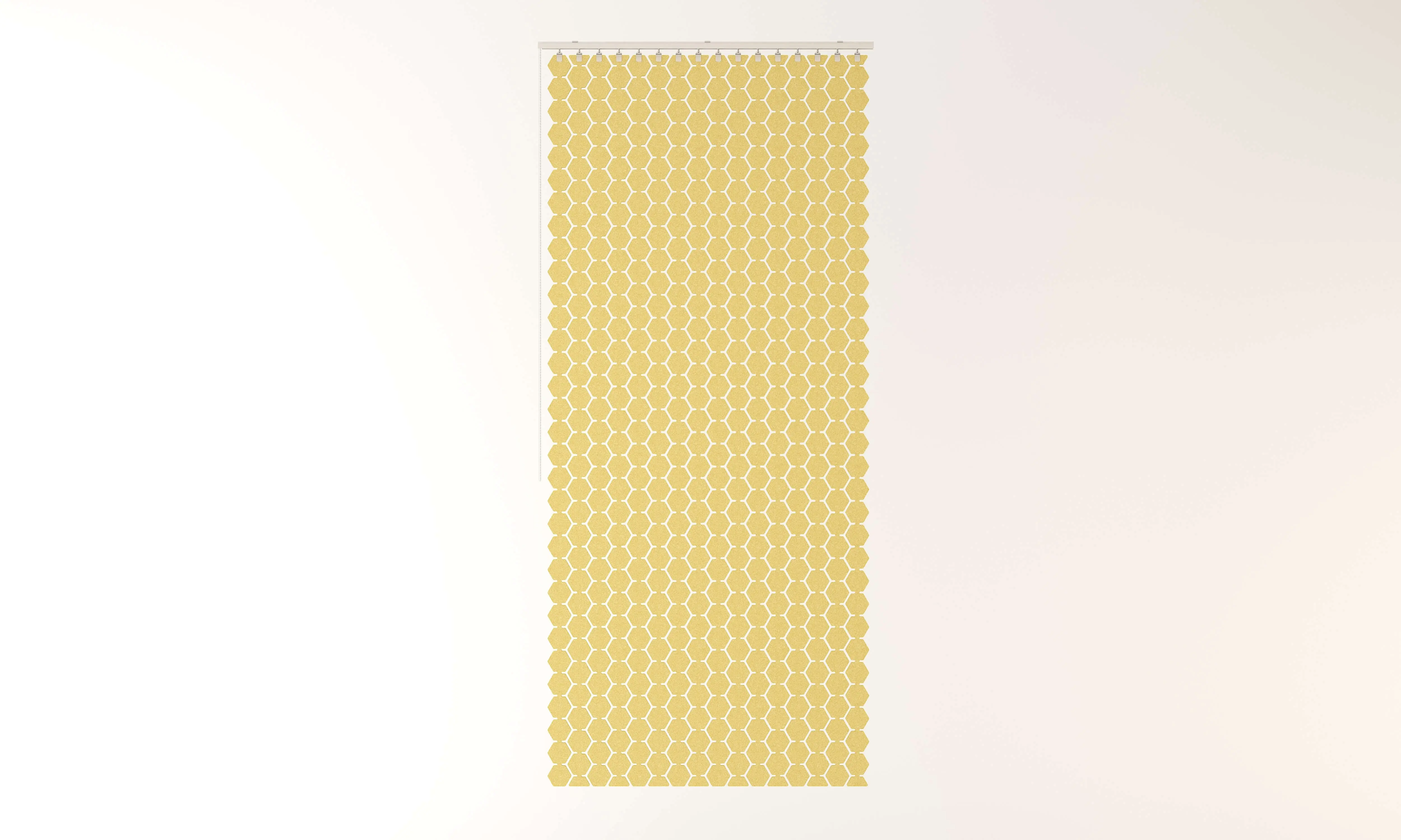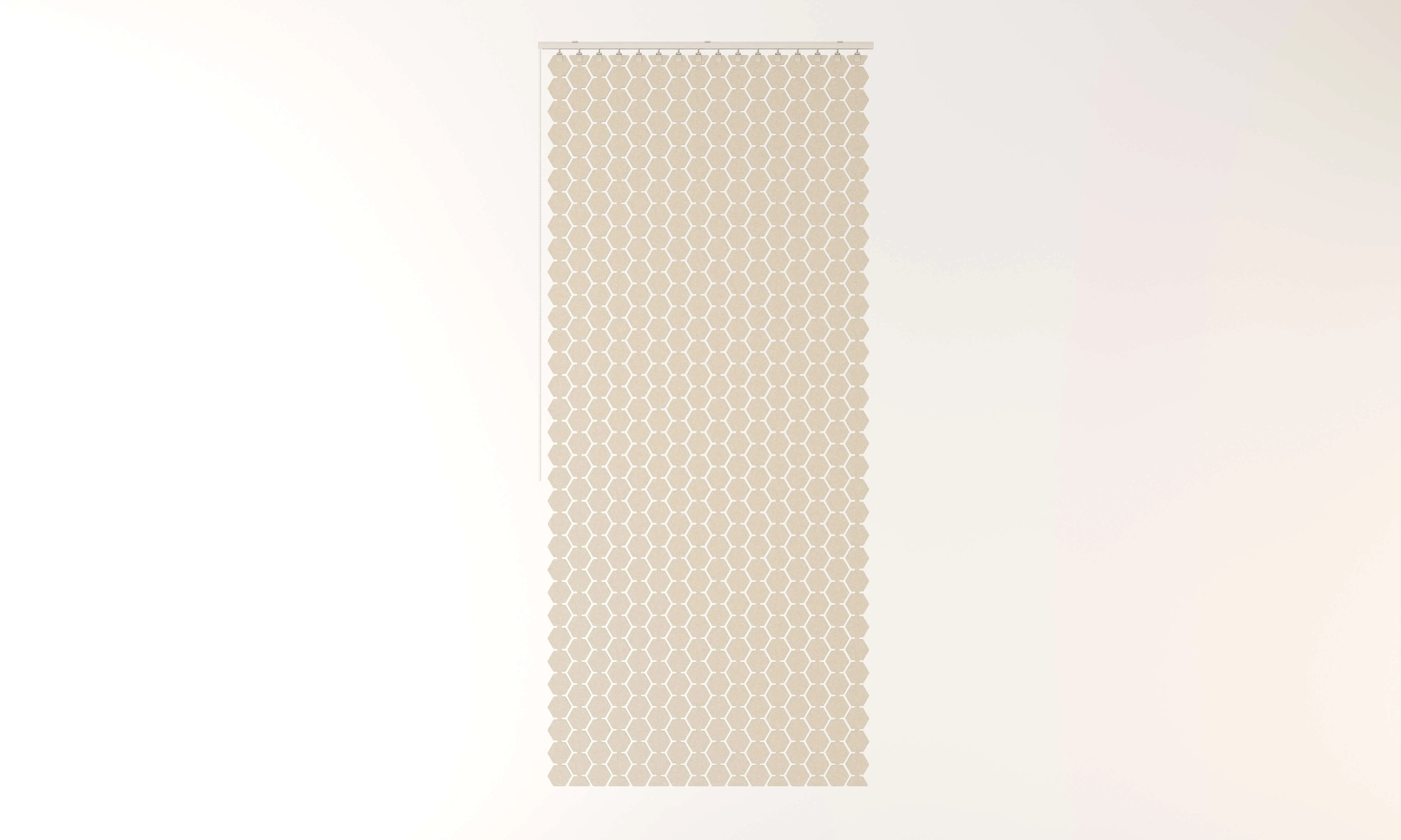 Standaardmodules zijn 1250 mm (49 1/4"") breed en zijn verkrijgbaar in hoogtes van 2820-2853 mm (111-112,3""), met opties voor vierkante, zeskantige, druppel- en effen patronen. Combineer meerdere modules, kies uit 36 viltkleuren en gebruik gespiegelde of gecentreerde openingen voor maximale visuele harmonie.