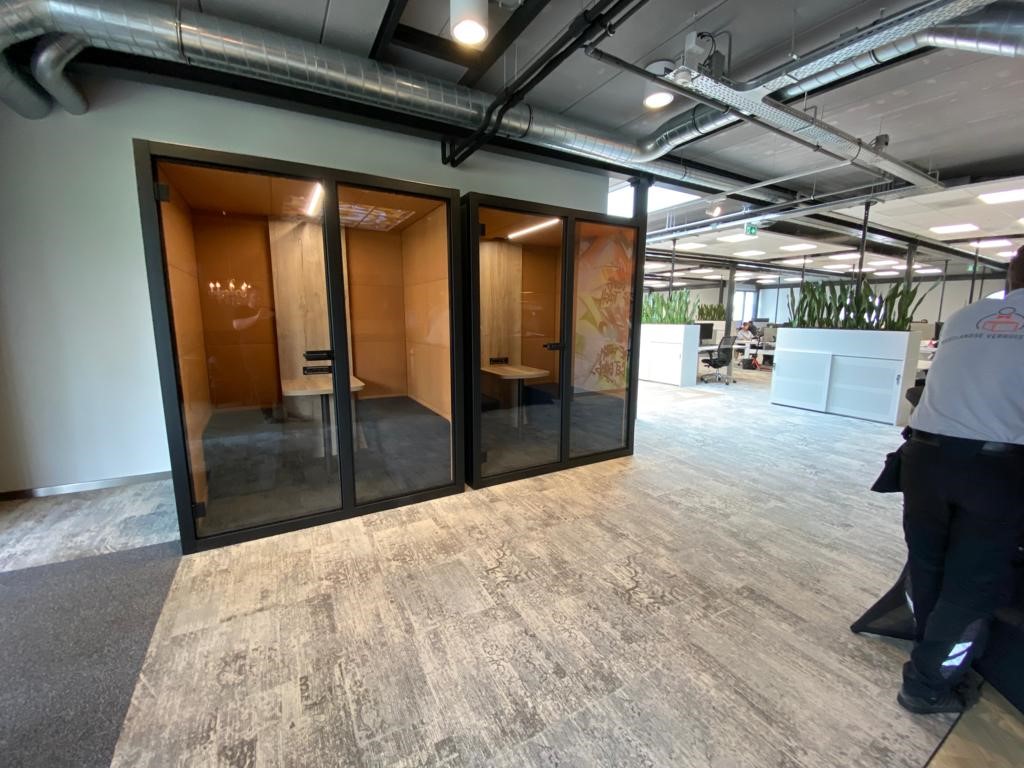 De Q-FOCUS 01 is een akoestische concentratieruimte, van binnen en buiten bekleed met akoestische panelen.