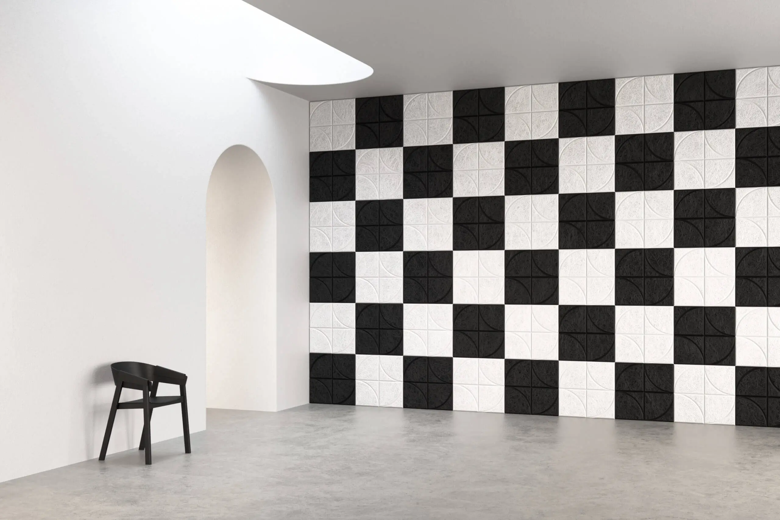 Geef vorm aan geluid en stijl met BAUX Acoustic Wood Wool Quarter Circle Tegels, waar innovatief design en akoestische kwaliteit elkaar ontmoeten.