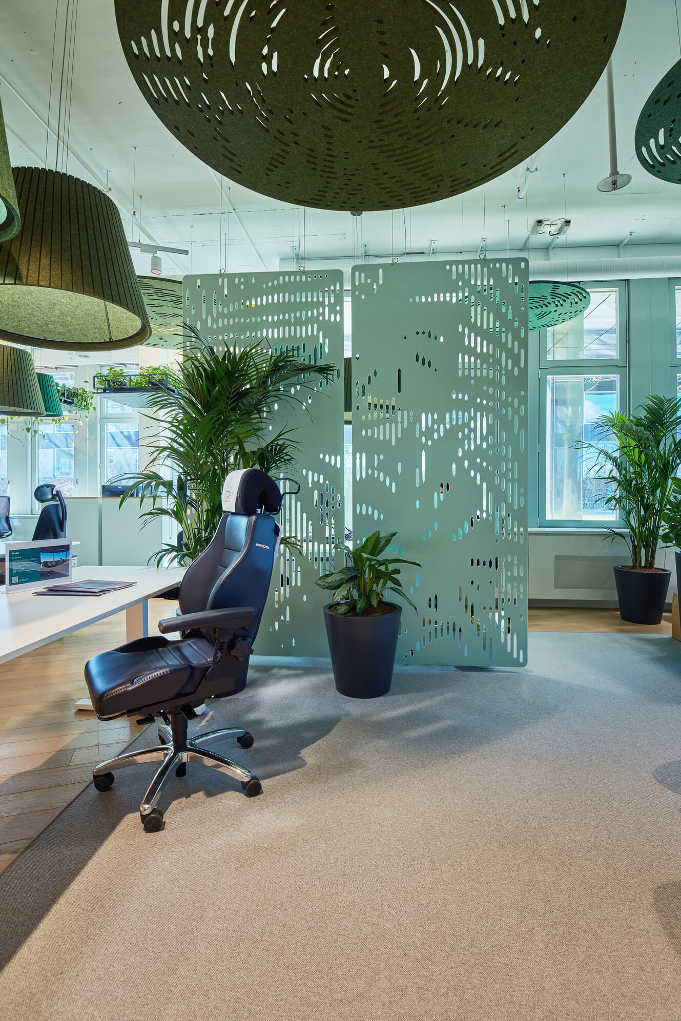 Gemaakt van ARCHISONIC® Felt, gemaakt met 60% post-consumer gerecycled PET. Jungle is verkrijgbaar in twee maten: Ø1200 mm (47,24") en Ø1800 mm (70,87"), met een standaard dikte van 24 mm (0,94") dikte. Het paneel levert een piek akoestische absorptie tot 32,29 Sabins, waardoor het ideaal is voor kantoren, lobby's, klaslokalen en hospitalityinterieurs.