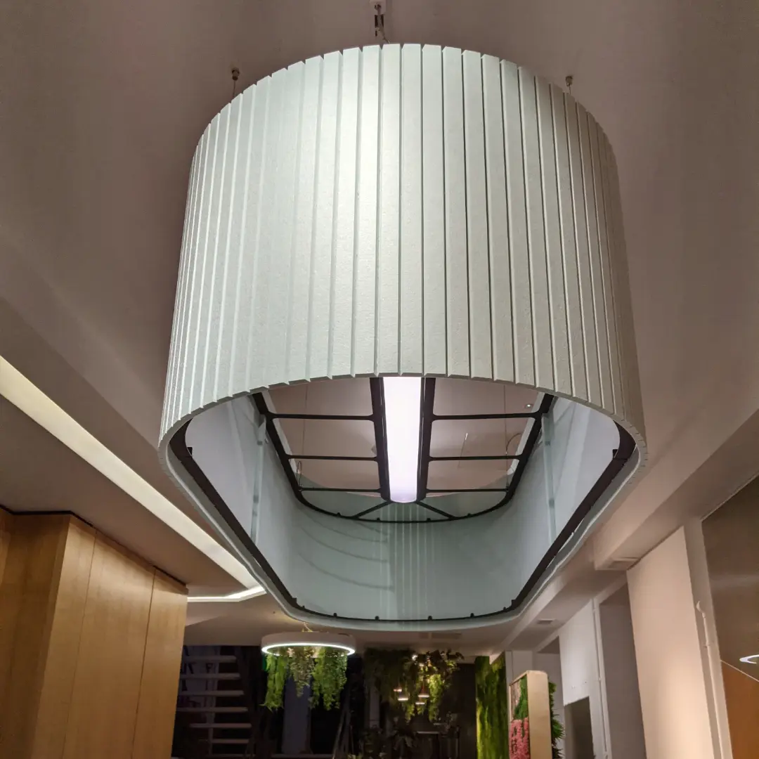 Met meer dan vijf vierkante meter sterk absorberend oppervlak lost het armatuur het probleem van de kamerakoestiek op voor vier werkstations en kan het conventionele plafondpanelen zonder beperkingen vervangen.