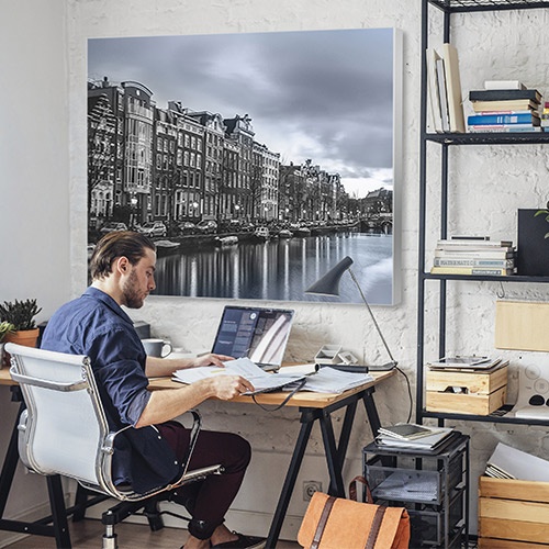 Omdat iedere gewenste foto op het paneel kan worden geprint (als de resolutie hoog genoeg is) kun je jouw thuiswerkplek voorzien van akoestische kunst aan de muur.