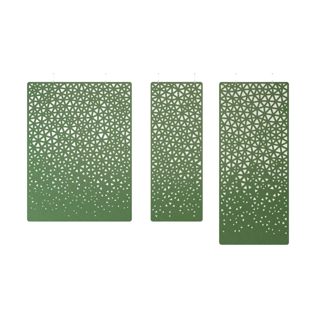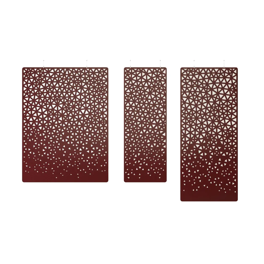 De harmonieuze verdeling van de driehoekige perforaties van de akoestische roomdivider Web is gebaseerd op de Delaunay-triangulatie.